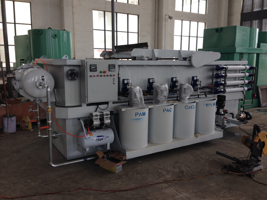 ⑴原系統(tǒng)出水進(jìn)入混凝池,混凝池中加入堿式氯化鋁和PAM,鋁鹽與水中的磷酸根就會(huì)發(fā)生化學(xué)反應(yīng)形成沉淀而去除,加入PAM有助凝作用。